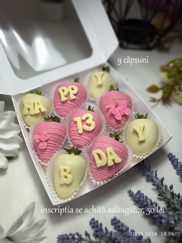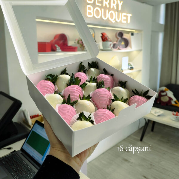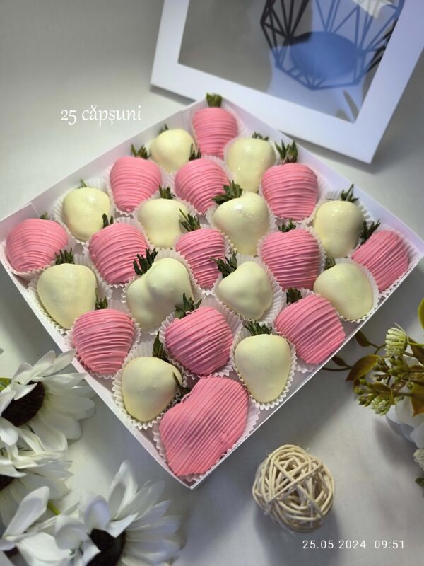 Un răsfăț pentru o prințesa adevarata! Cufundă-te într-o lume a magiei cu aceasta cutie cu căpșuni in ciocolată belgiană rafinată. Fiecare capsuna este o mușcătură fragedă de fericire care te va încânta pe tine și pe cei dragi.
