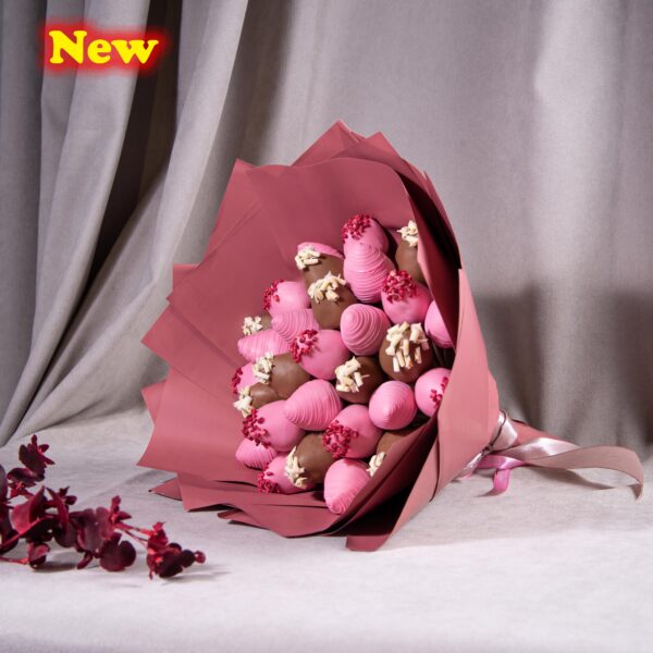 Velours Royal este un buchet magic, cu căpșuni suculente acoperite cu ciocolată fină belgiană. Modul perfect de a te răsfăța pe tine sau pe cei dragi — o combinație de gust și rafinament în fiecare mușcătură!