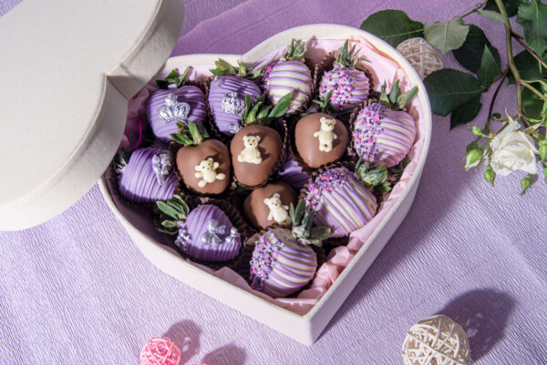 Cutia inima cu capsuni in ciocolata „Milk Lavanda” – intensificați-vă sentimentele și creați un moment de neuitat cu cutia „Milk Lavanda”. Această inimă luxoasă, realizată din căpșuni selectate, acoperite cu ciocolată belgiană delicată, va deveni cadoul perfect pentru cele mai speciale ocazii. Oferiți această inimă jumătății voastre și arătați-i cât de mult o iubiți!