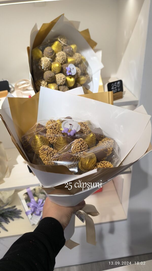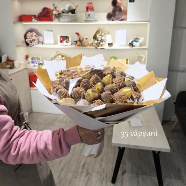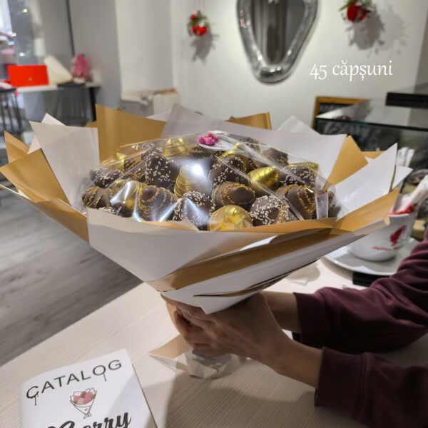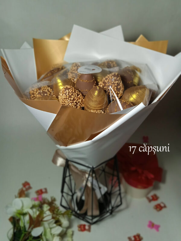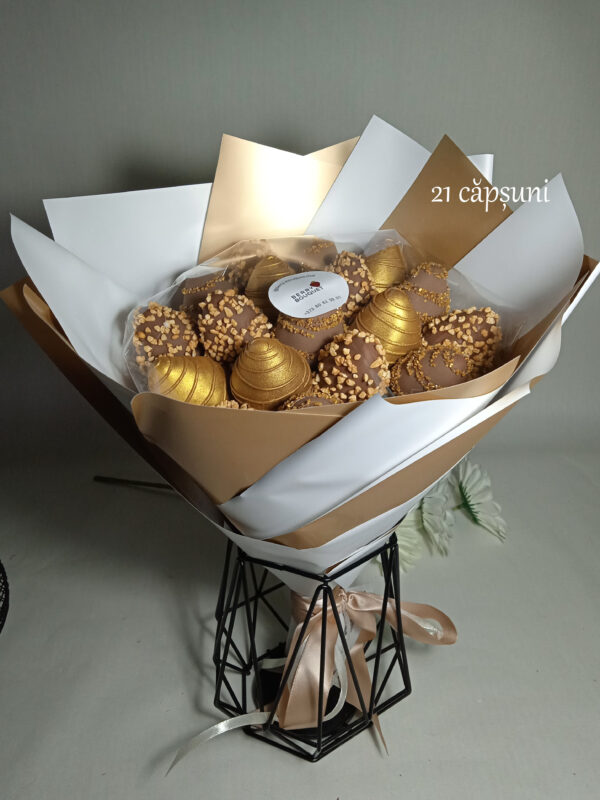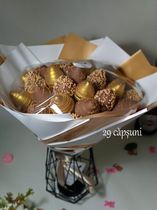 Oferiți un moment dulce de fericire cu buchetul nostru rafinat de căpșuni în ciocolată belgiană „Milk Gold”! Fiecare fruct, acoperit cu ciocolată belgiană delicată, este creat pentru a aduce bucurie și plăcere. Acest cadou va fi o minunată expresie a sentimentelor dumneavoastră și va oferi emoții de neuitat.