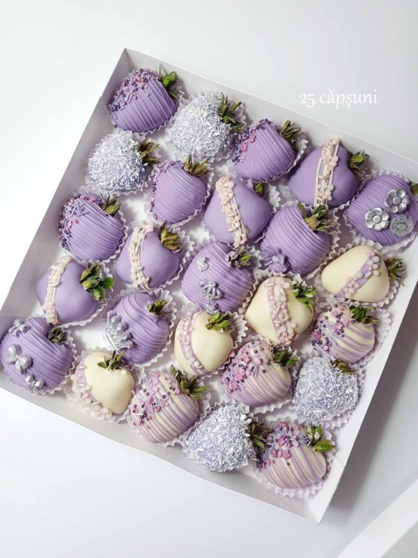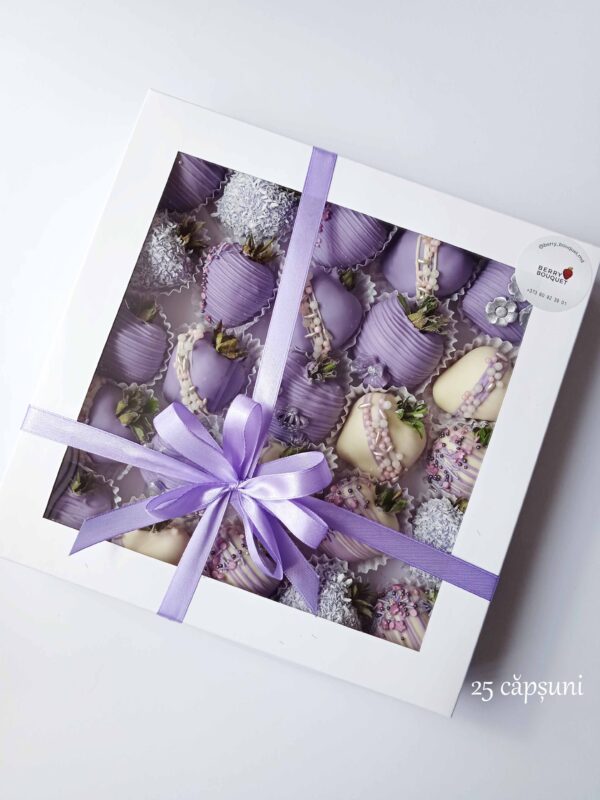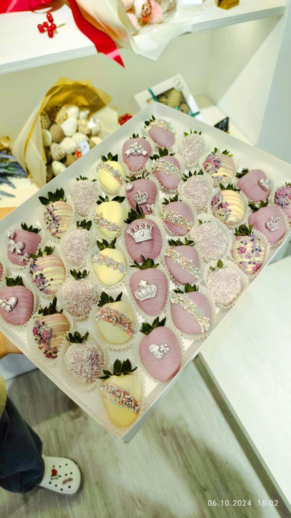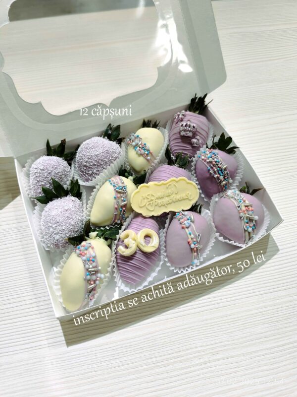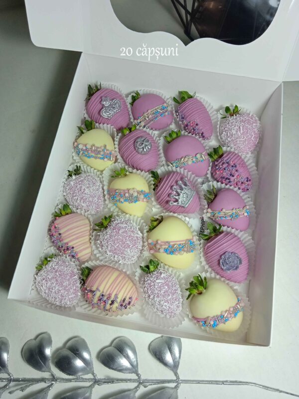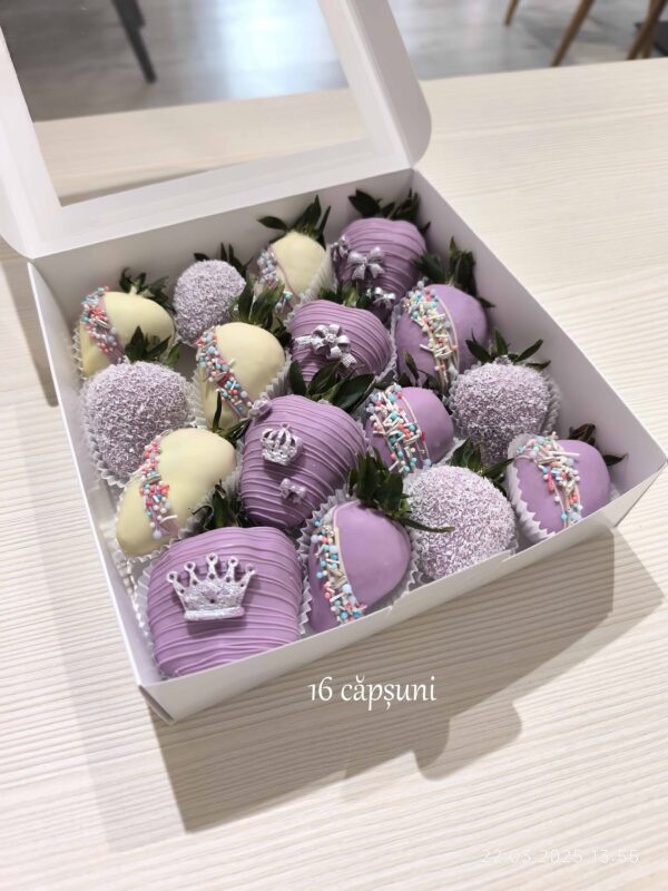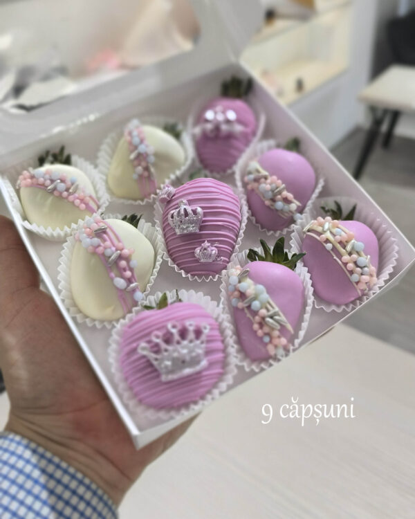 Cutie cu capsuni in ciocolata belgiana in decorul „Princess”;