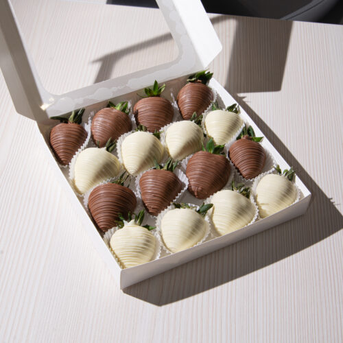 Oferiți-vă o plăcere de lux cu aceasta cutie cu căpșuni in ciocolată belgiană.